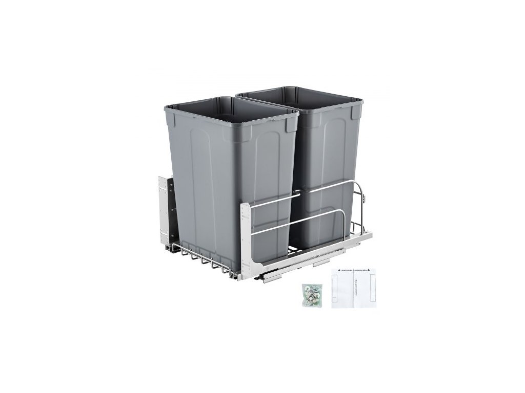Výsuvný odpadkový koš VEVOR, 35 QT x 2 Dvojitý podstavec pro kuchyňský odpad, odolný koš na tříděný odpad s dvířky a měkkým zavíráním, pro kuchyňskou linku, dřez, pod pracovní desku (šedý)Velká kapacita