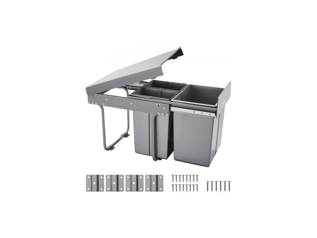 Výsuvný odpadkový koš VEVOR do kuchyňských skříněk, dvojitý odpadkový koš pod dřez o objemu 20+10+10 l, nádoba na tříděný odpad k montáži pod dřez, s odolným kovovým plně výsuvným posuvným systémem a rukojetí