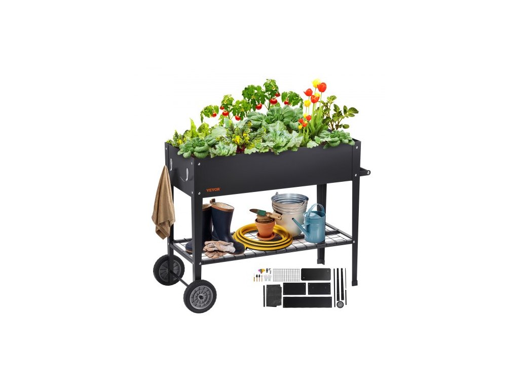 Vyvýšený záhon VEVOR, pozinkovaný kovový květináč 42,5 x 19,5 x 31,5 palce, vyvýšené venkovní květináče s nohami, pro pěstování květin/zeleniny/bylin na zahradě/terase/balkonu, černáBezkonkurenční materiál