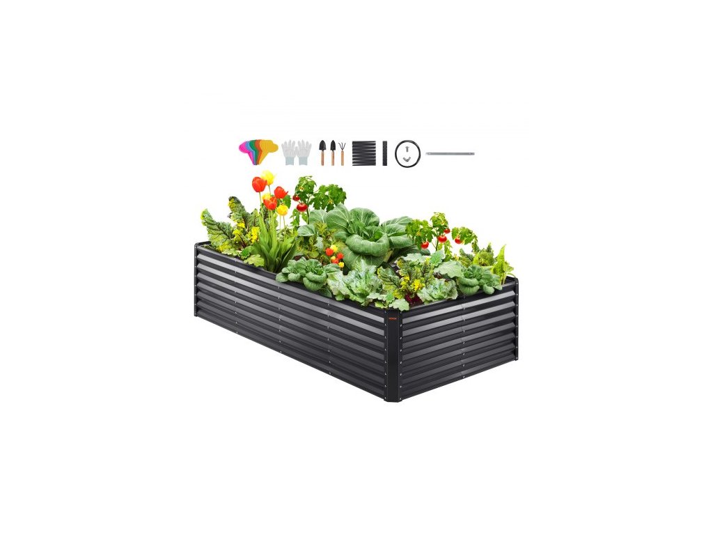 Vyvýšený záhon VEVOR, pozinkovaný kovový květináč 94,5 x 47,2 x 23,6 palce, venkovní truhlíky s otevřeným dnem, pro pěstování květin/zeleniny/bylin na zahradě/terase/balkonu, tmavě šedýBezkonkurenční materiál