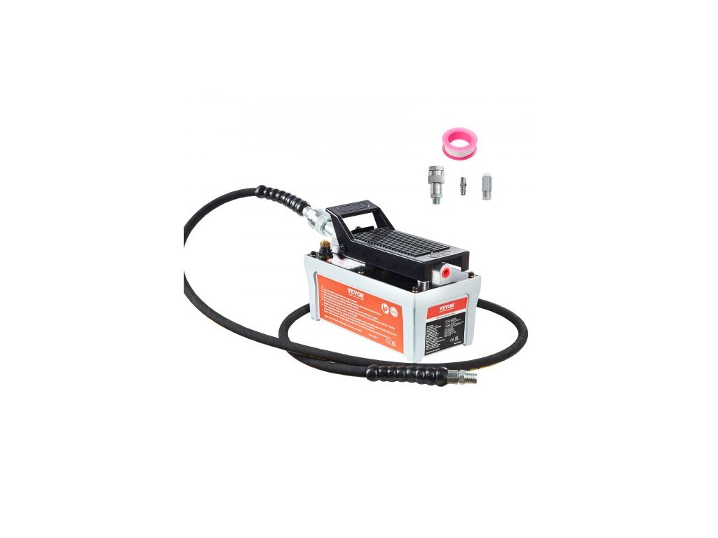Vzduchové hydraulické čerpadlo VEVOR, 10 000 PSI 1/2 Gal nádrž, NPT 3/8" olejový výstup, NPT 1/4" vstup, 6,6 stop potrubí, nožní pedál hydraulického čerpadla pro stroje s rámem karoserie a stahovací tyč, šedá