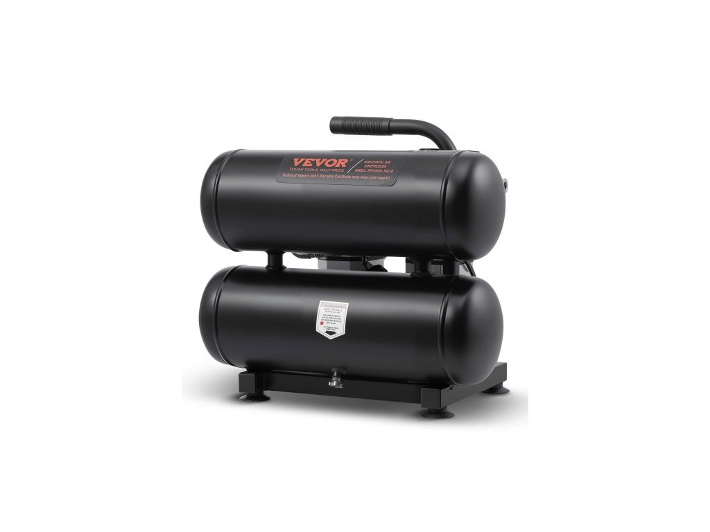 Vzduchový kompresor VEVOR, ocelová nádrž o objemu 4,6 galonu, 1HP 2,0 CFM při 90 PSI, bezolejový vzduchový kompresor a max. tlak 120 PSI, ultra tichý přenosný kompresor 80 dB, pro opravy automobilů, huštění pneumatik, stříkání lakuKompaktní kapacita
