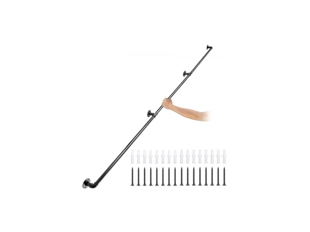 Zábradlí na schodiště VEVOR, zábradlí schodiště 9FT, nosnost 440 LBS Zábradlí z uhlíkové oceli, průmyslové zábradlí s držákem na stěnu, zábradlí s kulatým rohem pro vnitřní a venkovní použitíBezpečné držáky