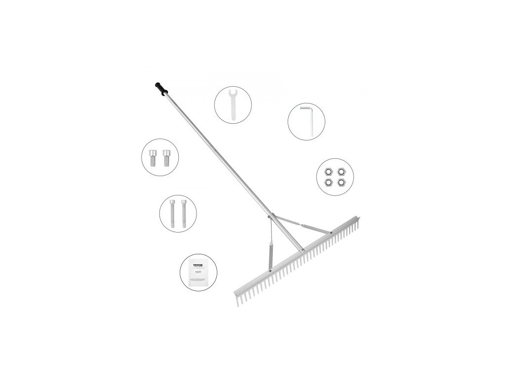 Zahradní hrábě VEVOR, hliníkové zahradní hrábě s hlavou 915 mm, hrábě na plevel u jezer s dlouhou rukojetí 1915 mm, pro kypření půdy, péči o trávník, odplevelování jezera, zahrady a rybníkaEfektivní čištění