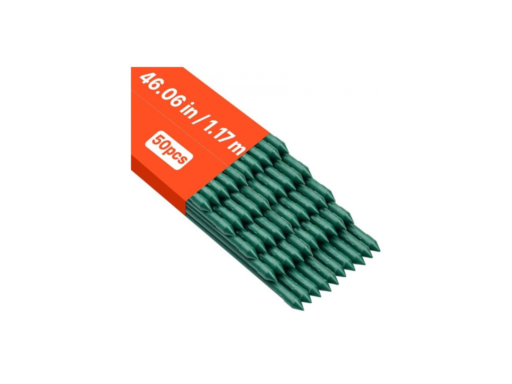 Zahradní kolíky VEVOR, balení 50 kusů, 1170 mm, plastem potažené kovové kolíky na rajčata, zahradní tyče pro podepření rostlin, se špičatým koncem a protiskluzovými výstupky pro pěstování popínavých rostlin, venkovní zelenina