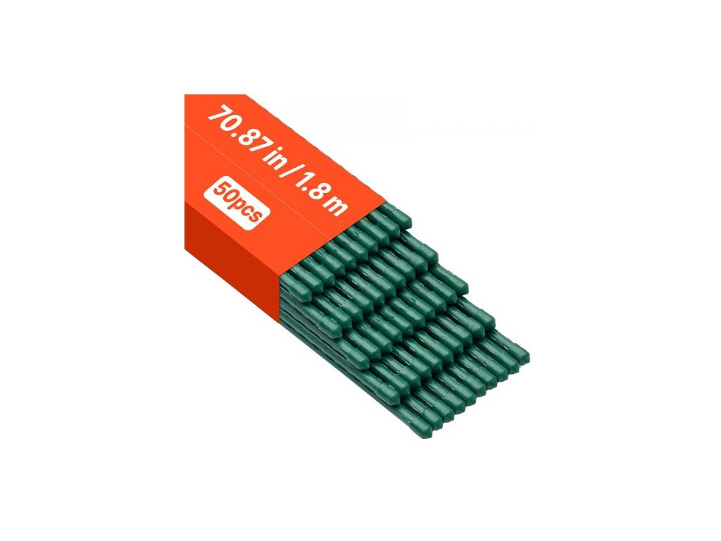 Zahradní kolíky VEVOR, balení 50 kusů, 1800 mm, plastem potažené kovové kolíky na rajčata, zahradní tyče pro podepření rostlin, se špičatým koncem a protiskluzovými výstupky pro pěstování popínavých rostlin, venkovní zeleninaZajistěte vzpřímený růst