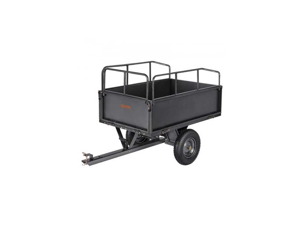 Zahradní přívěs VEVOR, objem 17 kubických stop a nosnost 272 kg, přívěs pro přepravu čtyřkolek a UTV, tažný ocelový sklápěcí vozík s 16" pneumatikami, ruční tah nebo nožní pedál, těžký přívěs pro sekačku na trávu a traktor