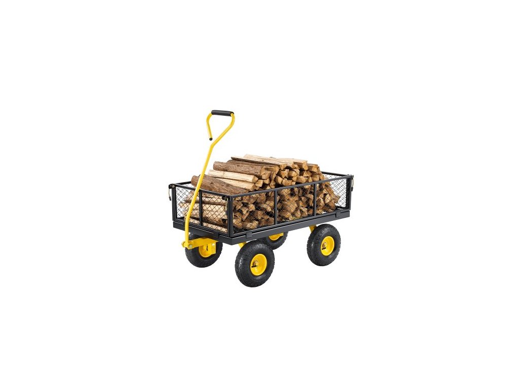 Zahradní vozík VEVOR 900 liber z odolné oceli, zahradní vozík na kolečkách, venkovní kovový zahradní vozík s 10" pneumatikami a síťovanými odnímatelnými bočnicemi (lze přeměnit na plošinu) a otočnou rukojetí o 180°
