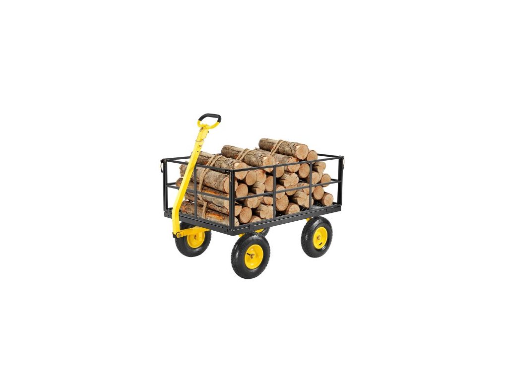 Zahradní vozík VEVOR z oceli o hmotnosti 1400 liber, odolný, tažný, zahradní vozík, venkovní kovový užitkový vozík 2 v 1 s 13" terénními pneumatikami, odnímatelnými síťovanými bočnicemi a otočnou rukojetí o 180°Pohodlná rukojeť