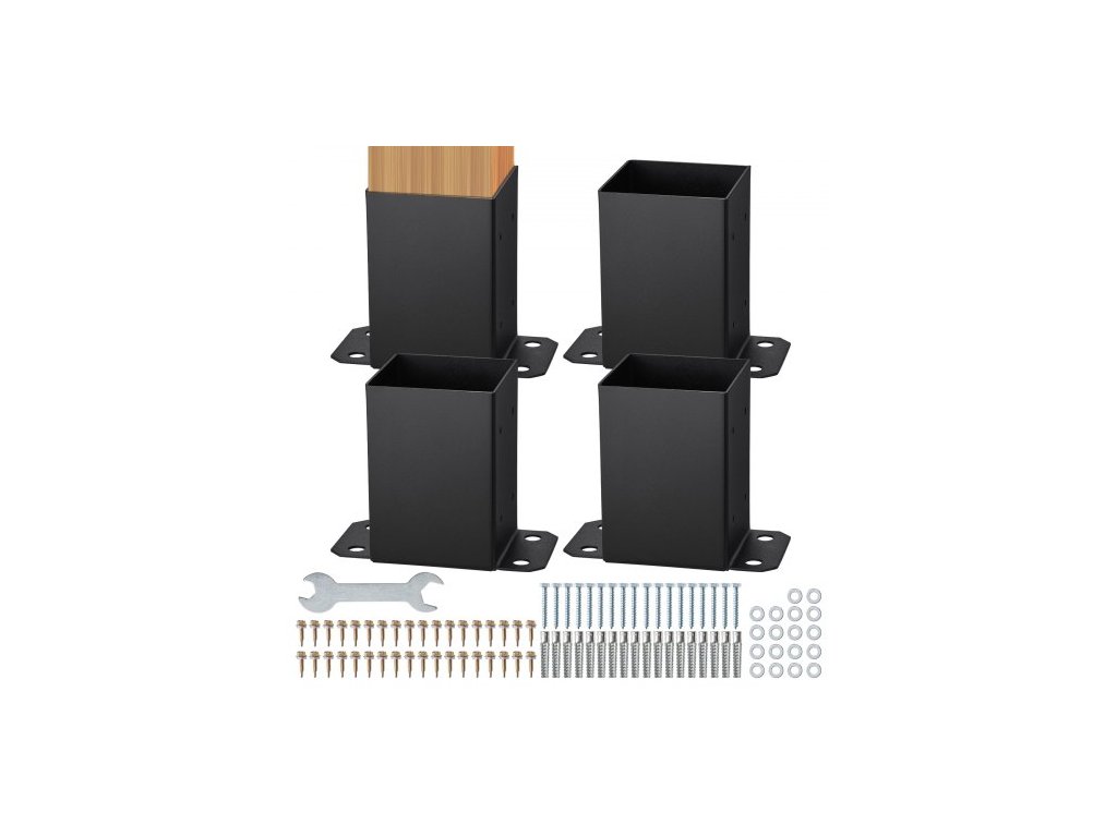 Základna sloupku VEVOR 101,6x101,6 mm, 4 ks, vnitřní rozměr 91x91, konzole základny sloupku, odolná práškově lakovaná kotva na sloupek, matně černé dřevěné konzole pro zábradlí pavilonu, podpěru základny terasyBezpečnostní podpora
