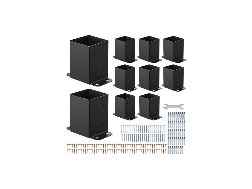 Základny sloupků VEVOR 4x4, 10 ks, vnitřní rozměr 3,6x3,6 palce / 91,44x91,44 mm, konzole sloupků, vysoce odolné sloupky z uhlíkové oceli pro terasu, dřevěné konzole pro zábradlí pavilonu, podpěrná deska terasy, černá