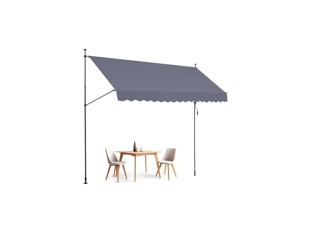 Zatahovací markýza VEVOR 157 x 47" na terasu, sluneční clona s ruční klikou, venkovní stříška na terasu, nastavitelná výška od 86 do 122 palců, pro terasu/balkon/dvorek, tmavě šedá