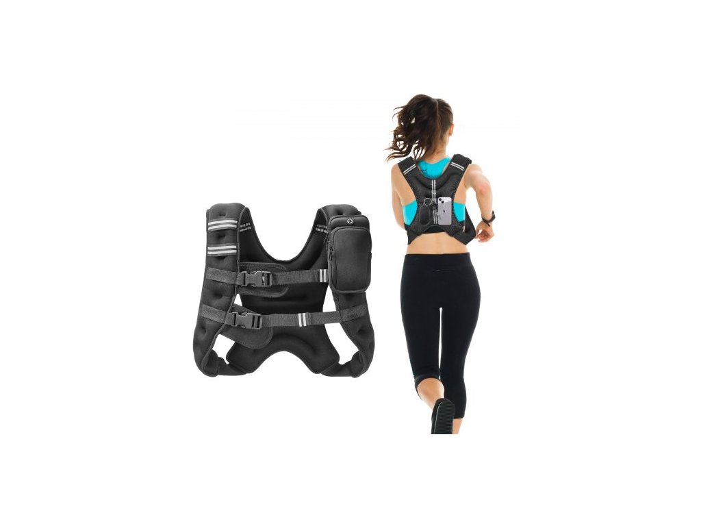Zátěžová vesta VEVOR, zátěžová vesta o hmotnosti 16 liber s reflexním pruhem, nastavitelná vesta s přezkou pro muže a ženy, cvičební vybavení pro silový trénink, běh, jogging, fitness a hubnutíVíce úložného prostoru
