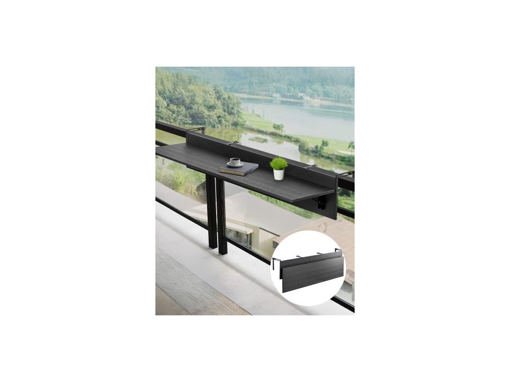 Závěsný stůl na balkon VEVOR, skládací stůl na balkonové zábradlí 12 x 59 palců, venkovní barový stůl na balkon, nosnost 50 liber, vhodný pro zábradlí od 1" do 5,9", servírovací stůl na terasu a terasu