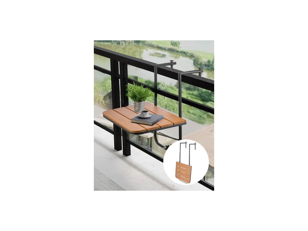 Závěsný stůl na balkon VEVOR, skládací stůl na balkonové zábradlí 25 x 24 palců, venkovní barový stůl na balkon, nastavitelný ve 4 úrovních, vhodný pro zábradlí od 1" do 8,27", servírovací stůl na terasu a terasuMultifunkční skládací zábradlí
