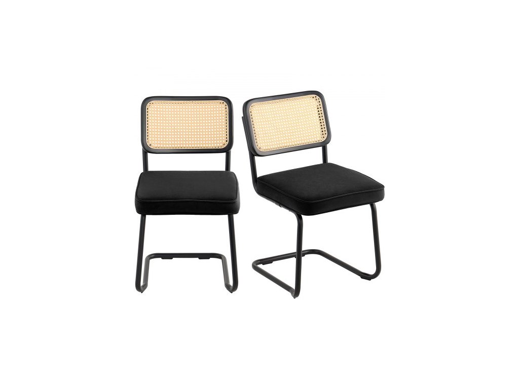 Židle VEVOR z ratanu, sada 2 kusů, jídelní židle v moderním stylu poloviny století, čalouněná sametová akcentní židle s ratanovým opěradlem, retro jídelní kuchyňská židle do obývacího pokoje, ložnice, čítárny, kanceláře, černáRetro-moderní fúze
