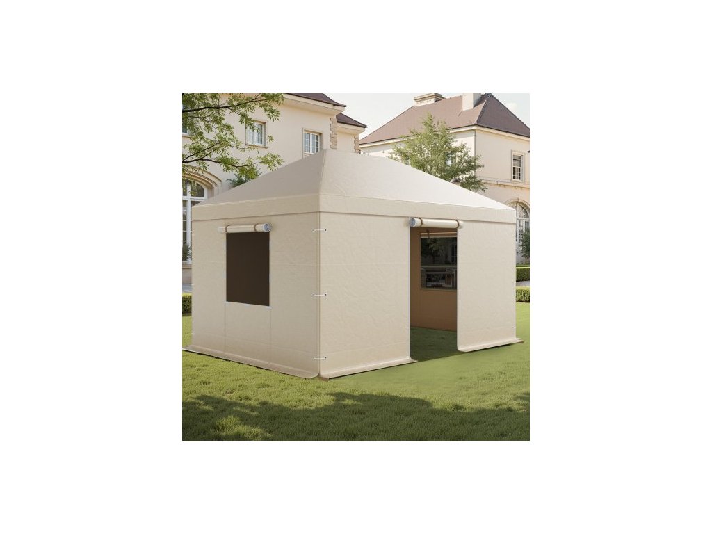 Výška jednoduché střechy: 0,92 m, Rozměry produktu: 10,17 × 14,47 stop / 3,10 × 4,41 m, Výška okapu: 7,09 stop / 2,16 m, Barva: Béžová stříška + béžový suchý zip, Rozměry okna: 3,44 × 3,44 stopy / 1,05 × 1,05 m, Počet oken: 2,Číslo modelu položky: LTD-MM180-1014, Materiál: 180G PE plachta, oboustranně voděodolná, UV ochrana, Vhodné pro okapy altánu. Rozměry: 10,10 × 14,42 stop / 3,08 × 4,39 m, Čistá hmotnost: 11,1 kg
