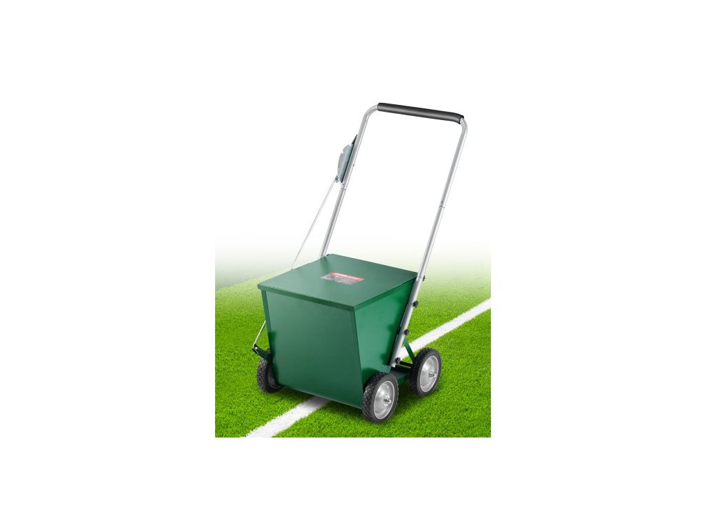 Značkovač čar VEVOR, 4kolový, 2 nebo 4 palce dlouhé čáry, nastavitelný značkovač čar, s gumovou nastavovací rukojetí, velká kapacita prášku 65 liber, pro baseballové a softballové vnitřní hřiště, zelený