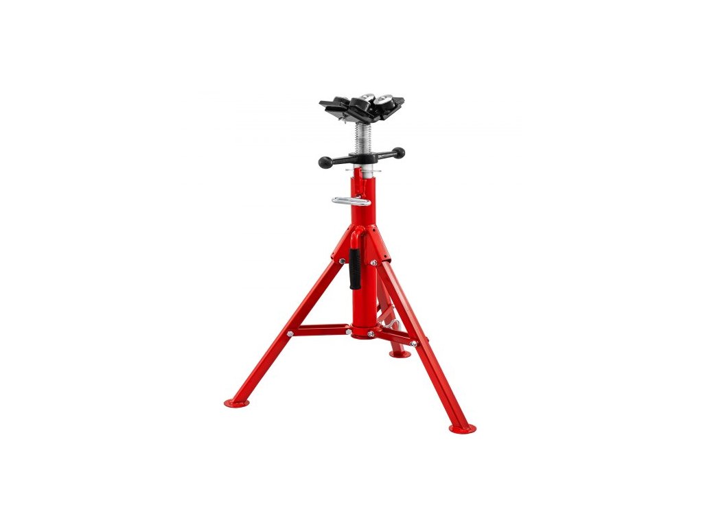 Zvedák potrubí VEVOR, model V-Head 1107A, vysoký skládací stojan na potrubí, ocelové zvedáky, nosnost 2 tuny, zvedák potrubí o průměru 28 palců až 51,5 palce s přenosem 4 kuličekDobře postavené